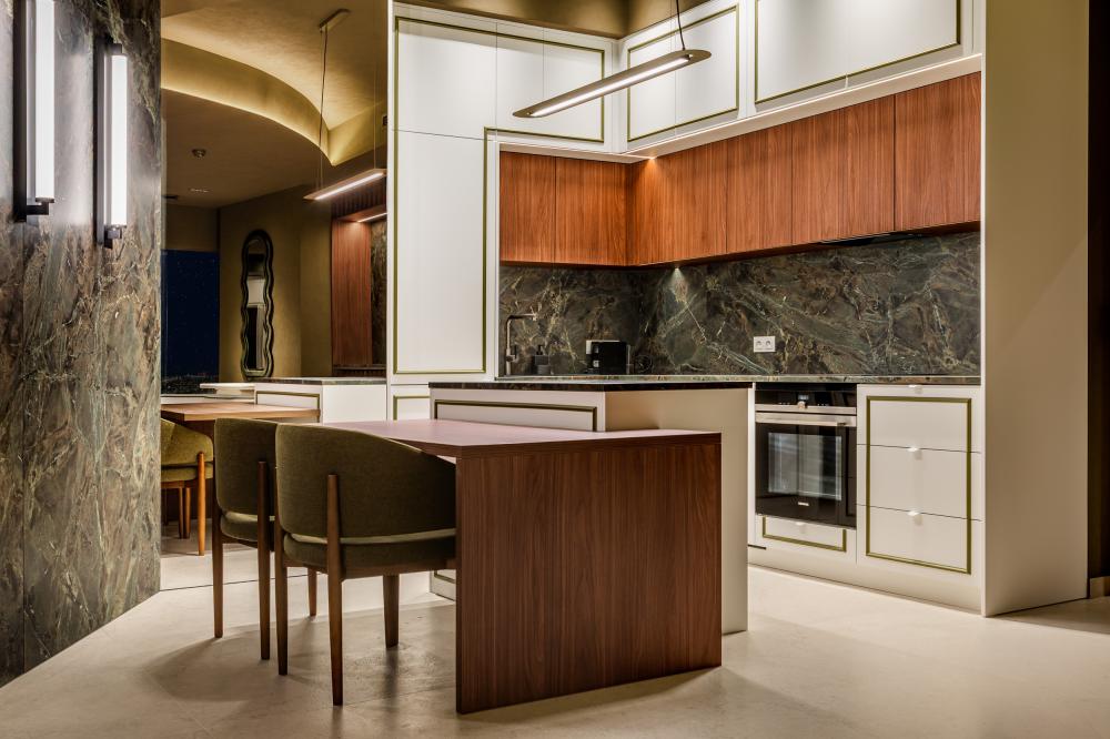 Apartament Madera na 31. piętrze to 70 m² dopracowanej przestrzeni, w której luksus spotyka się z naturą. Nazwa nie jest przypadkowa - inspiracją była wyspa wiecznej zieleni i spokoju, co wyraźnie widać w aranżacji wnętrza.