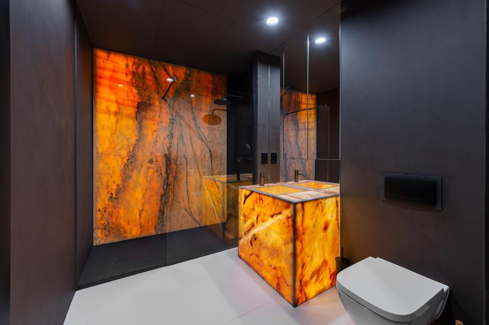 Dieses moderne Apartment mit 50 m² befindet sich im 33. Stock eines der höchsten Gebäude Polens und bietet einen spektakulären Blick auf die westliche Skyline von Wrocław. Der ideale Ort, um romantische Sonnenuntergänge, die Lichter der Stadt und eine einzigartige Perspektive über den Dächern zu genießen. Das Interieur wurde in einem futuristischen, bis ins Detail ausgearbeiteten Stil gestaltet – helle Farben, Designer-Beleuchtung und einzigartige Dekorelemente schaffen eine Atmosphäre modernen Luxus. Mittelpunkt des Apartments ist ein großzügiger Wohnbereich mit Jacuzzi direkt an den Panoramafenstern, sodass Entspannung mit Aussicht sowohl tagsüber als auch nach Einbruch der Dunkelheit zu einem besonderen Erlebnis wird. Den Gästen stehen eine voll ausgestattete Küchenzeile, ein komfortabler Sitzbereich sowie ein elegantes Bad mit hinterleuchtetem Stein zur Verfügung. Das Apartment vereint Luxus, Design und spektakuläre Ausblicke und schafft den idealen Rahmen für einen besonderen Aufenthalt – voller Entspannung und unvergesslicher Eindrücke.